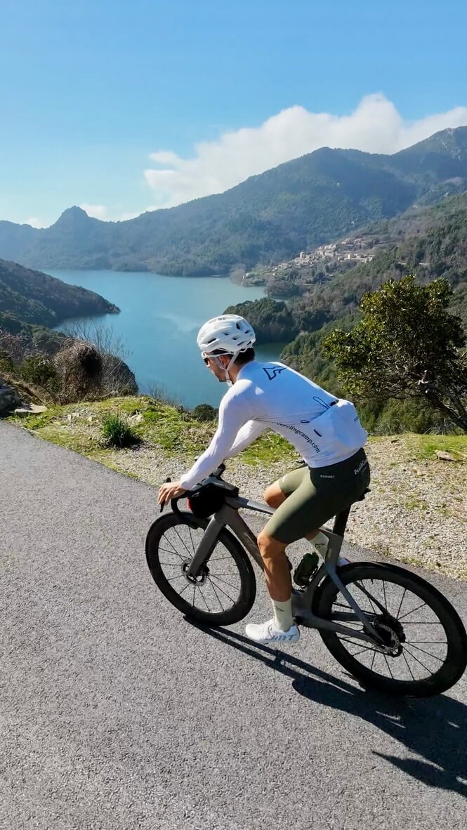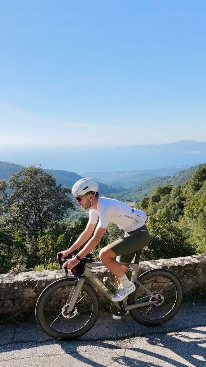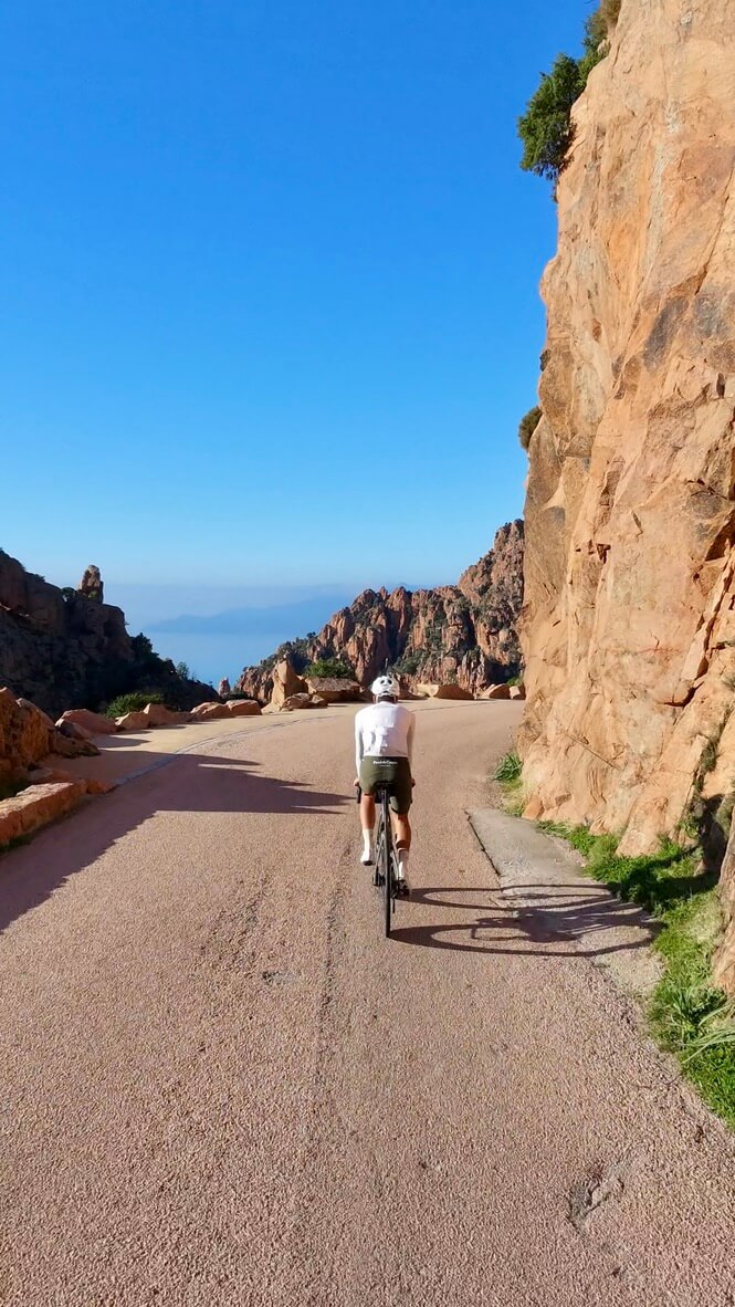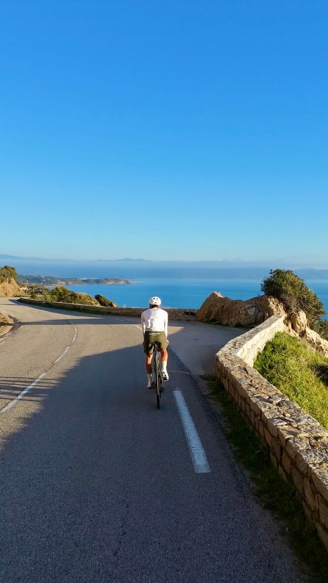 Expect balcony roads above the sea, quiet remote climbs, stone villages and long, sunlit days. For riders used to Mallorca, Girona or Calpe, Corsica offers something rarer: a more dramatic, less crowded island experience.